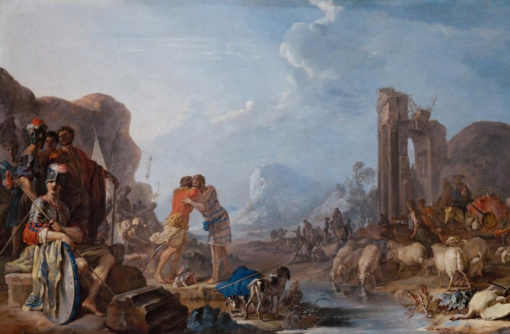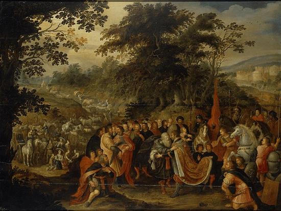 그리고 에서는 야곱에게 입맞춤을 합니다. 이는 형제들의 재회(출4:27)를 포함한 가족과의 관계에서 가장 자주 행해집니다. 이 입맞춤은 에서의 환대를 나타내지만, 한편으로는 창27:27절에서 야곱이 아버지에게 했던 기만적인 입맞춤을 떠올리게 하면서 그것마저 포용하는 것처럼 보입니다.